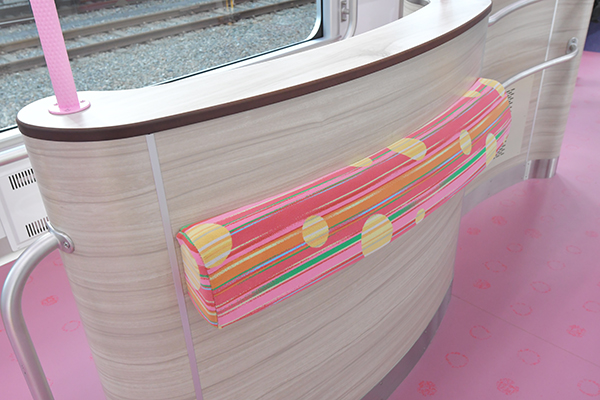「ひだまりスペース」は広々としたフリースペースになっており、車いすやベビーカーでも安心して利用できる上、子供でも景色が見やすいように大型化された窓が特徴です。窓には手すりも設けられており、子供がこれに掴まりながら外の景色を楽しめるようになっています。外観でもこの窓は編成中のアクセントになっている印象でした。この「ひだまりスペース」という名称は社員により考案された複数案の中から、3案を選出。そこから一般利用者への愛称投票により決まったものとなります。