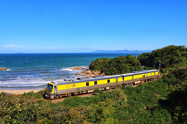 ●とても綺麗な秋の日本海をバックにキヤ141-1が走ります。
