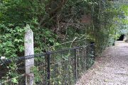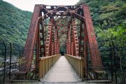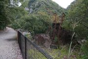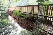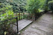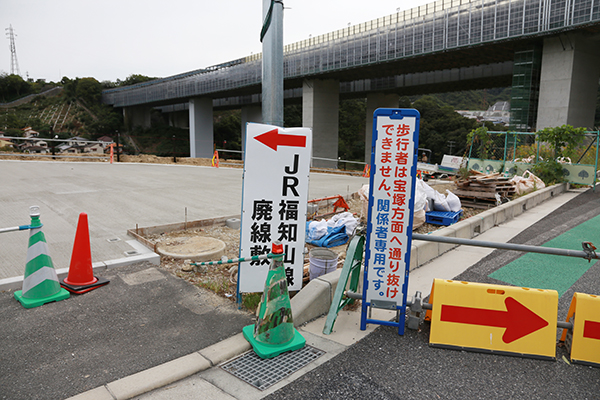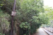 2 案内に沿って進むと廃線跡へ到着。幹線道路はかなり交通量も多いので歩行時は注意が必要。 【この画像の記事に戻る】 大阪駅からたった30分でアクセスできる行楽スポット!?渓谷の自然を感じる鉄道の廃線跡を辿ってみた! 次の画像