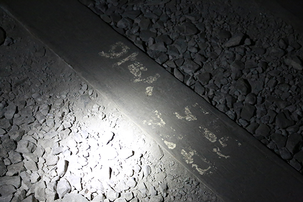 21 風雨に晒されないトンネル内の枕木、比較的状態のいいものが多かった。なかには、当時の表記が残っているものも。 【この画像の記事に戻る】 大阪駅からたった30分でアクセスできる行楽スポット!?渓谷の自然を感じる鉄道の廃線跡を辿ってみた! 前の画像 次の画像