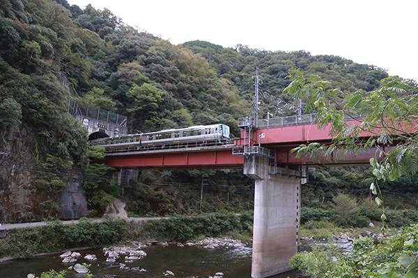 25 武庫川を越える223系区間快速。新線は旧線に対して直角方向に交わる 【この画像の記事に戻る】 大阪駅からたった30分でアクセスできる行楽スポット!?渓谷の自然を感じる鉄道の廃線跡を辿ってみた! 前の画像 次の画像