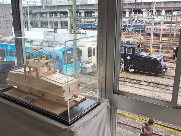 ●「頑張るぐんまの中小私鉄フェア2025」上信電鉄の会場に小学4年生が製作した木製デキが展示されてました。窓の外には本物のデキがスタンバイ。