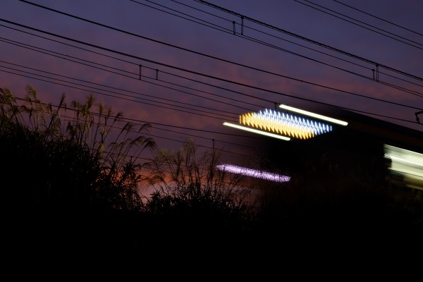釣瓶落としの日が暮れて、ライトが季節の移ろいを照らし出します。