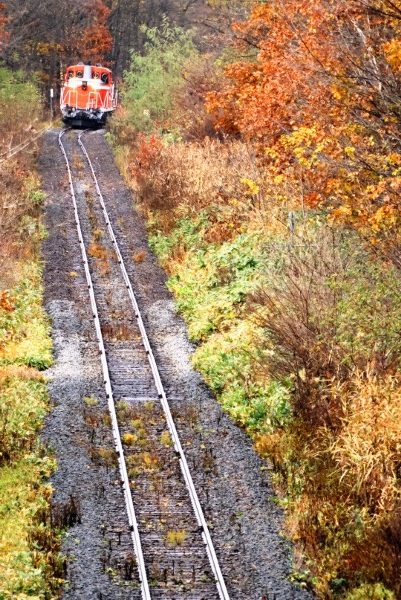 紅葉も終盤の富良野線で、DLの訓練運転を見かけました。