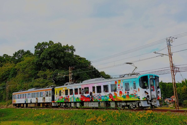 一畑電車では、8000系が2両になったので、おひろめ運転が全線で運転されました。先にデビューした8001は朝ドラ「ばけばけ」のラッピング車で、8002は台湾鉄路とのコラボ仕様のラッピング車です。同じ車両とは思えないような色合いでした。