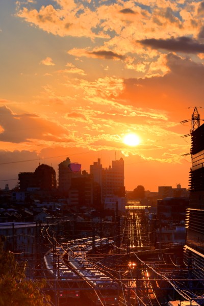 真っすぐ伸びる目黒線の上を交差する大井町線の上下線9000系が仲良く夕日を浴びて。