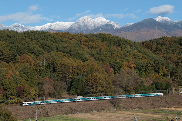 ●三連休最終日、初冠雪した八ヶ岳を背景に、臨時「あずさ」が行き交いました。