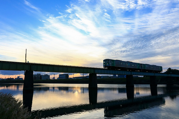 急行「もりよし1号」が、鉄橋を駆け抜けて行きました。
