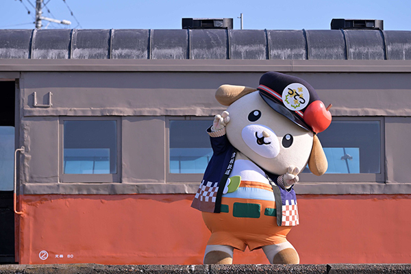 ●津軽鉄道開業95周年記念イベントが開催された日曜日,客車が停車中の津軽飯詰駅に「つてっちー」がやって来ました。