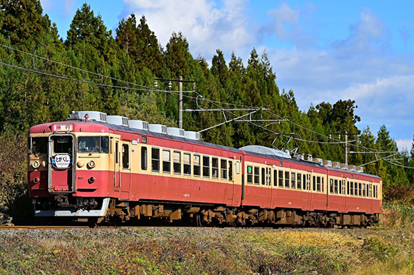 ●新北陸色への塗色変更が発表されたえちごトキめき鉄道413系、455系。交直流急行色で迎える最後の秋。柔らかい朝の日差しを浴びて関山ストレートをゆっくりと通過して行きました。