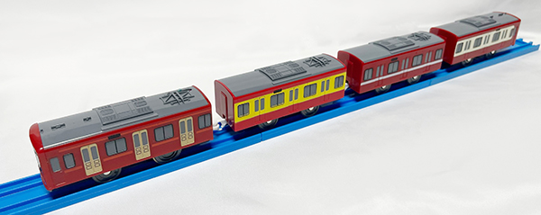 nayu1500_05 通常仕様を組み込んで「フル編成」にした120年の歩み号。 【この画像の記事に戻る】 1両ごとに色が違う「京急120年の歩み号」 実はここから始まったプラレールの京急1500形を見る! 前の画像 次の画像
