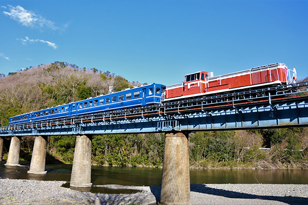 久慈川を悠々と渡るDE10と12系。往年の客車列車を彷彿とさせる。