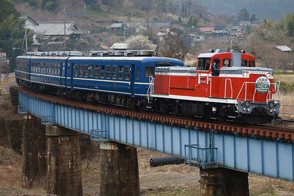 水郡線は水戸と郡山を結ぶ路線で、久慈川の流れに沿って走っている箇所も多く、2019年10月の台風の影響で大きな被害を受けましたが、2021年3月27日に全線復旧を果たしました。その復旧から1周年を記念して3月26日・27日にDE10と12系客車の臨時列車が運転されました。