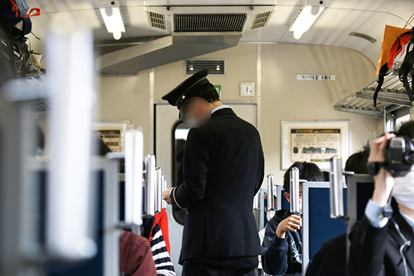 水郡線に入ったあたりで検札がやってくる。この光景もかつての客車列車のようだ。