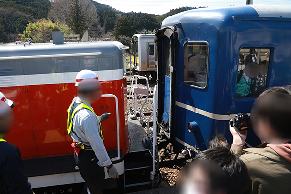 常陸大子到着後は機関車の付け替えが行われ、4号として運行されました。列車は常陸大子駅の3番線に入線し、以降の牽引機は待機していたぐんま車両センターのDE10 1649にバトンタッチされます。解結・連結作業はレイル・ファンのみならず一般の方も見入ってしまうほどの迫力ある作業でした。
