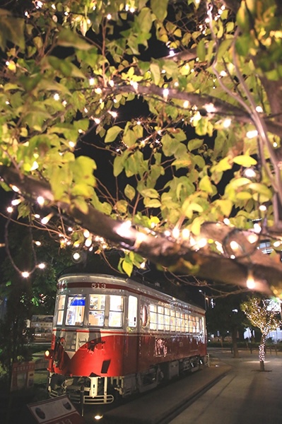 展示されている、懐かしい丸窓電車もクリスマスモードになりました。