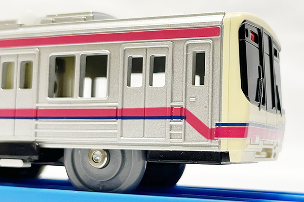 nayu8000_04 京王車の特徴であるアイボリー。前面パーツとの接合部は塗装、パーツそのものは成型色だが、あまり違和感なく仕上がっている。 【この画像の記事に戻る】 独自金型の祖!京王電鉄限定の8000系プラレールに見る意外な「パイオニア」的な要素とは? 前の画像 次の画像