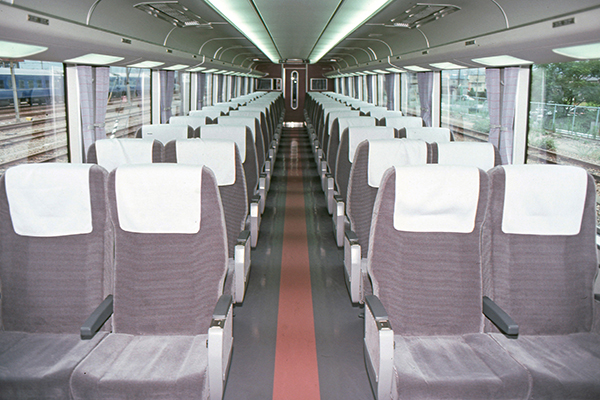 普通席はその後の、サーモンピンク/グレーブルーといった色使いと異なりブラウンとグレーの中間的な色使いだった。