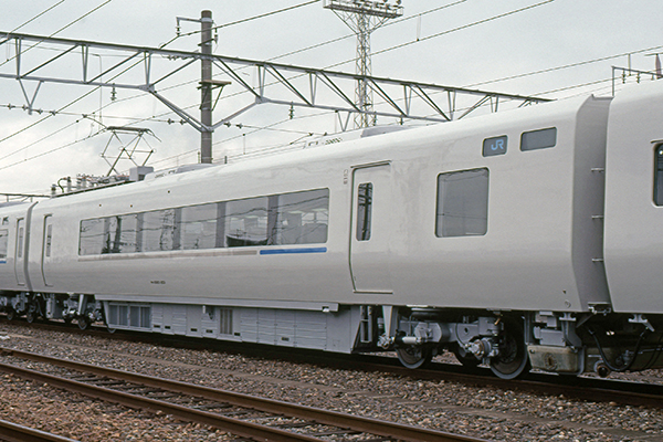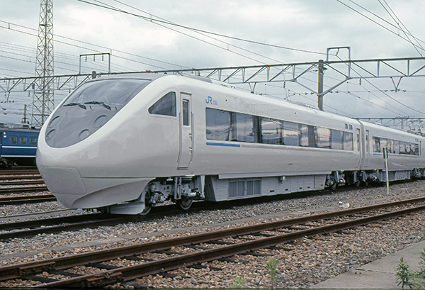 1992年の7月に登場した、681系先行試作車。塗色が量産車と異なり、側面窓廻りのグレーの帯が無く、窓下の帯は青帯とグレーの帯とでセパレートされたようにデザインされ、青色は車両端部に寄せられていた。