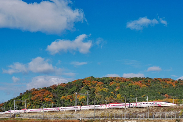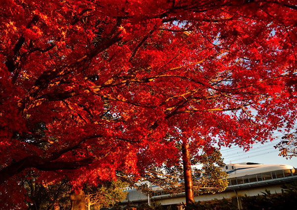 ●真っ赤に色付いた紅葉のトンネルをN700Sが往く。