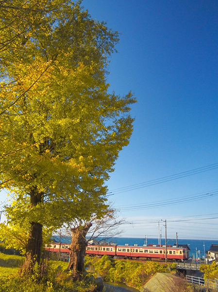 ●トキ鉄の国鉄急行色、銀杏と最後のコラボ。