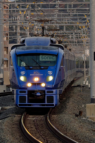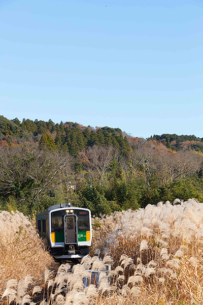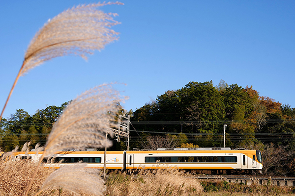 ●伊勢志摩の秋が終わって、冬の装いの季節に。冬風に靡くススキの横に近鉄特急「ACE」がやって来ました。