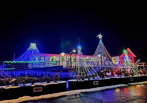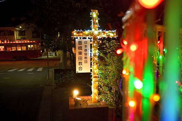 ●教会のクリスマスイルミネーションと「おでんしゃ」。