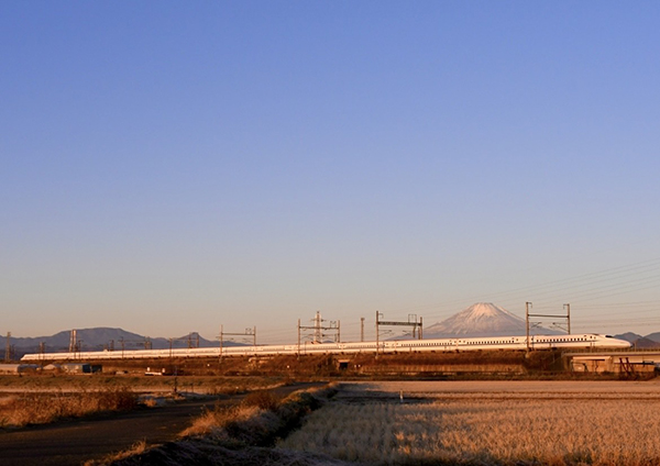 ●朝日を全身に浴びながら一路都内に向かう新幹線