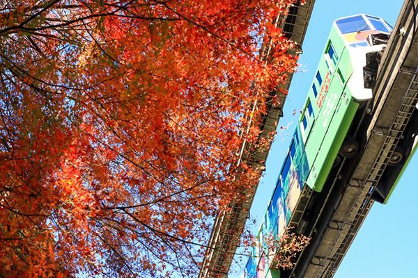 ●見上げれば去りゆく秋にモノレールラッピング車。多摩地区もこれから冬へと移ろいでいきます。