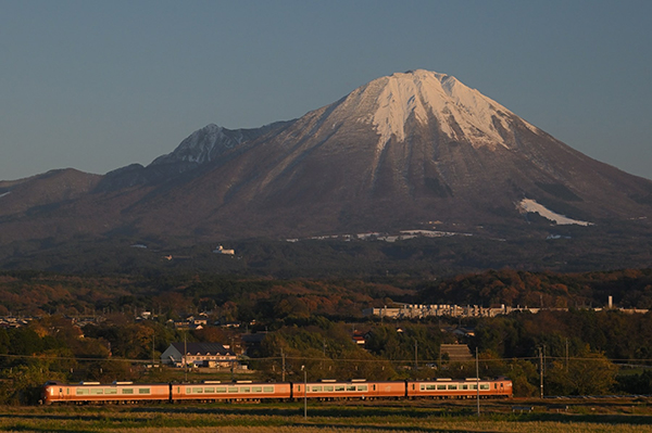 ●冠雪した伊吹山が赤みを帯びた夕刻、特急「しらさぎ」が颯爽と駆け抜けて行きました。