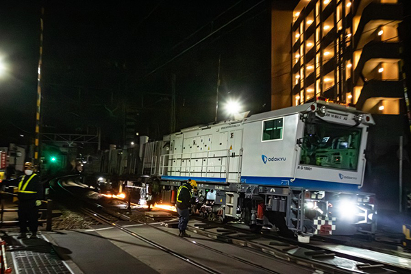 ●冷え切った夜、熱いレール削正車に遭遇しました。