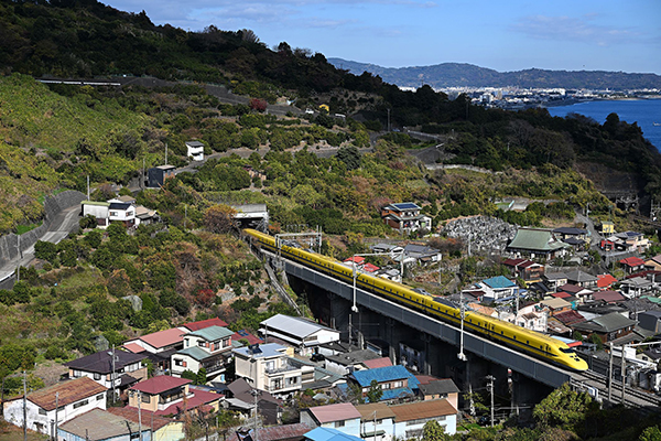 ●みかんと柚子が実る山を抜けて「ドクターイエロー」が西へ向かいました。