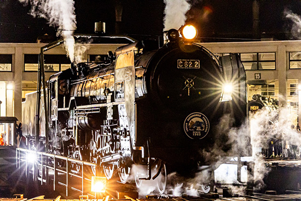 ●冷たい夜風に火の入った機関車