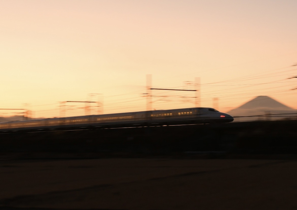●夕日が翳る間を駆け抜けるN700系