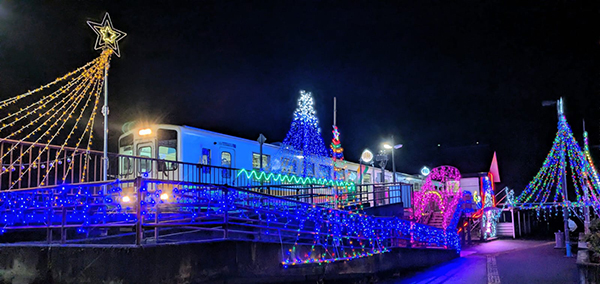 最終列車をクリスマスイルミネーションが包み込みます。