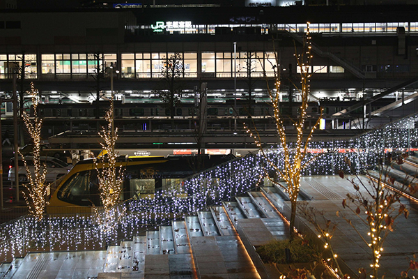 忙しなく列車が行き交う宇都宮駅にイルミネーションを添えて
