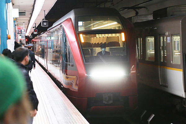 夜も更けた深夜2時、大阪難波に「ひのとり」が入線してきました。入線の様子だけ見れば普段の「ひのとり」となんら変わりはありませんが、その行先に注目してみると、「五十鈴川行き」となっています。名阪特急として普段は運用されている「ひのとり」ですが、この日だけは伊勢輸送に助っ人として参加。通常の運用では入ることのない五十鈴川まで年明けて間もない大阪線を一路伊勢へと走り抜けます。