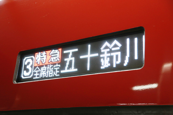 普段は見ることが出来ない「特急『ひのとり』五十鈴川」の表示と「ひのとり」。
