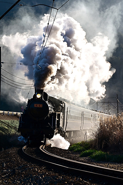 ●黒いSLの運転休止最終日、斜光に輝いた迫力のSLの勇姿に魅了されました。
