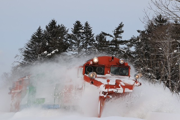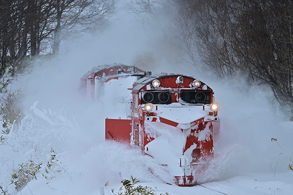 雪降りしきる夜明け前、ヘッドライトを頼りにKTR8500が駆け抜けて行きました。