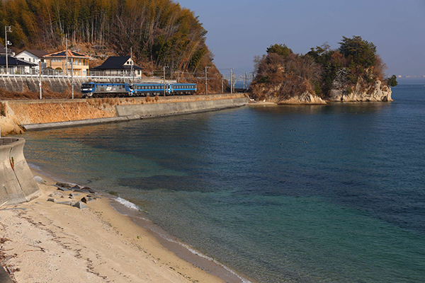 JR四国のキハ185系2両が、JR九州へと移動しました。穏やかな瀬戸内海を横目に走ります。