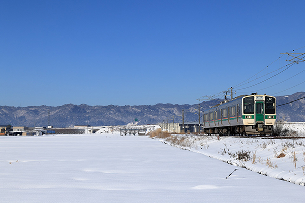 雪原の奥羽路を行く山形地区のベテラン719系。