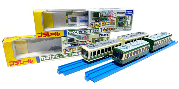 この間、2003年9月11日にS-47として発売されたのが「サウンド江ノ電1000形」です。商品名の通り、サウンドユニットを搭載した車両を連結する「サウンドプラレール」であり、2月27日発売の「S-42 サウンド223系新快速」「S-43 サウンドE231系近郊電車」、7月31日発売の「S-46 サウンドJR東海313系電車」に続く4車種目となり、同時に私鉄車両初のサウンド車となりました。