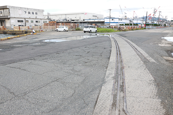 埠頭への引き込み線の廃線跡。