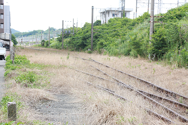 14 貨物駅の北端。草生した線路がここにしばらく列車が来ていないことを物語っている。 【この画像の記事に戻る】 急に道路に線路が!下関駅前に多く残る線路の正体とは 国鉄時代の貨物列車の面影を探しに廃線跡を辿る! 前の画像 次の画像