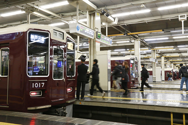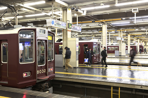 ■ずらりと並ぶマルーンカラーの阪急電車!大阪梅田駅の魅力