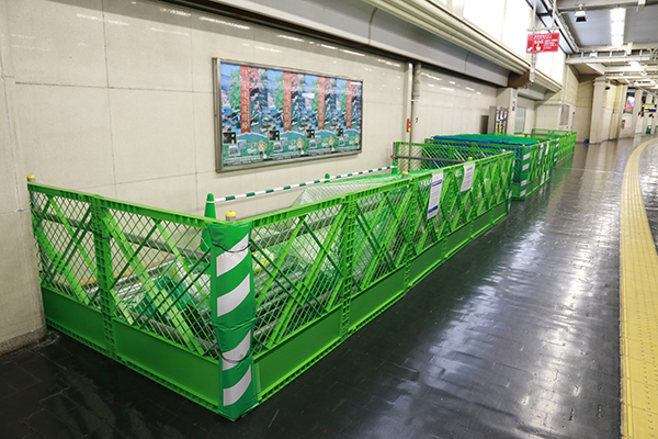 神戸線9号線降車ホームに設けられた資材置き場。
