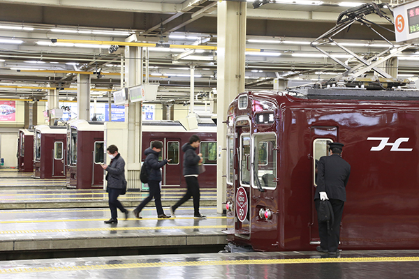 13 最終間際に回送列車で埋まった神戸線ホーム。宝塚線にはフルマルーンに復刻された6013Fが花を添えた。 【この画像の記事に戻る】 阪急大阪梅田、変化の胎動!神戸線の停止位置変更 名物の横並びが見納めへ その前夜を見届ける 前の画像 次の画像