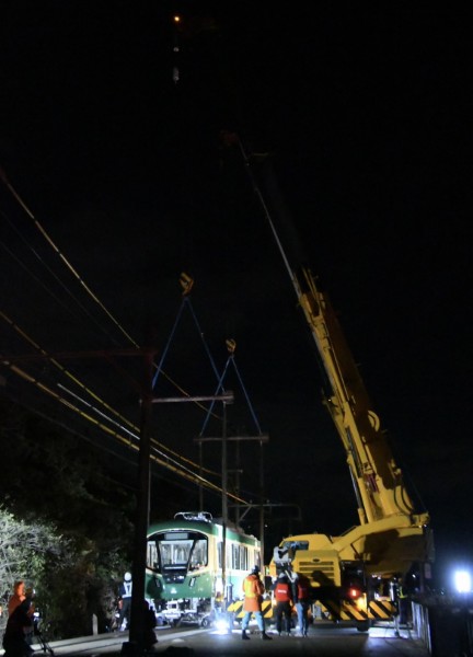 身が引き締まる程の寒さの中、2編成目の700形搬入作業風景