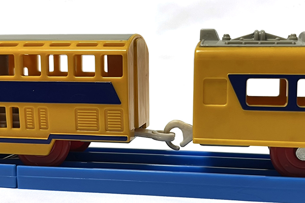 nayu04 旧製品。1981年の発売当時は裾帯モールドが全車塗装されていたが、1985年以降は中間車を除いて省略された。 【この画像の記事に戻る】 限定品で今でも現役!発売から45年を迎えるロングセラープラレール「近鉄30000系ビスタカー」とは 前の画像 次の画像